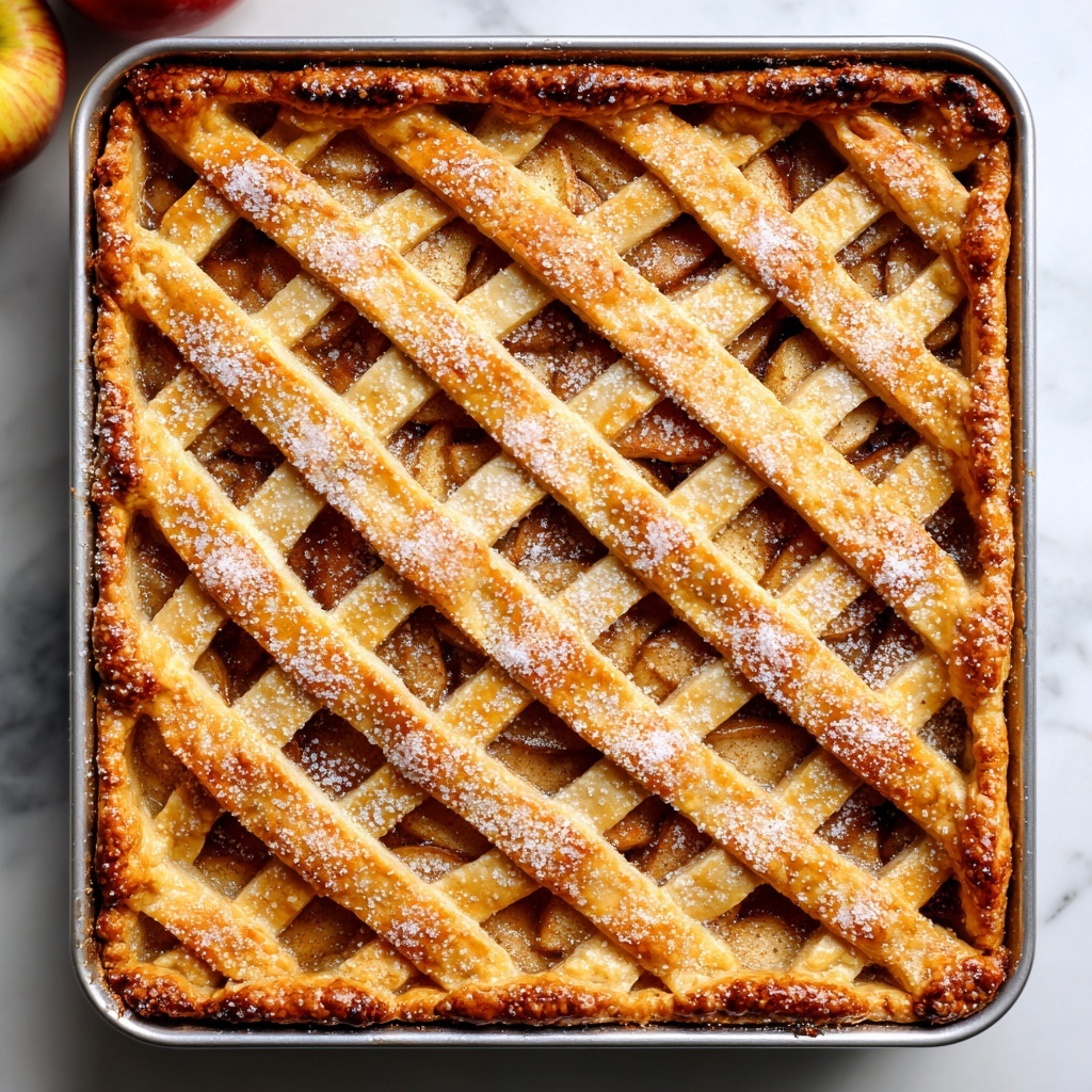 Enhance the cozy vibe of this Apple Slab Pie Recipe by adding a scoop of vanilla ice cream or a generous dollop of whipped cream. A dusting of cinnamon or powdered sugar can add an extra touch of sweetness and elegance. For a little contrast, fresh mint leaves or a drizzle of caramel sauce will make each slice pop visually and flavor-wise.