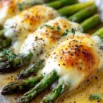 This Asparagus Stuffed Chicken Breast recipe features tender chicken breasts filled with fresh asparagus spears and melted mozzarella or provolone cheese, seasoned with a blend of garlic, paprika, and herbs. The chicken is seared to a golden perfection before being baked to juicy, tender doneness. A delightful, nutritious dinner option that’s easy to prepare and packed with flavor.