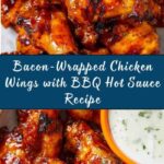 For gatherings or game day, serve your Bacon-Wrapped Chicken Wings with BBQ Hot Sauce Recipe on a large wooden board surrounded by colorful dipping sauces like ranch, blue cheese, or extra BBQ sauce. Add some lemon or lime wedges on the side for a zesty squeeze. You can even skewer the wings for easy grabbing—perfect for casual entertaining.
