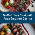 A flavorful and vibrant Balsamic Caprese Grilled Flank Steak recipe perfect for an easy yet impressive meal. Tender, marinated flank steak is grilled to perfection and topped with a fresh Caprese salad of cherry tomatoes, mozzarella, and basil, finished with a drizzle of balsamic glaze for a tangy, sweet touch.