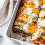 This hearty casserole pairs wonderfully with simple sides like fresh fruit salad, crispy bacon, or roasted tomatoes. These fresh and light options complement the rich, savory flavors beautifully.