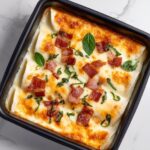 - Bake: Cover the baking dish with aluminum foil and bake in the preheated oven for 35 minutes. Then remove the foil and bake for an additional 10 minutes, or until the egg custard is completely set and the cheese topping is melted and bubbly with slight golden spots.