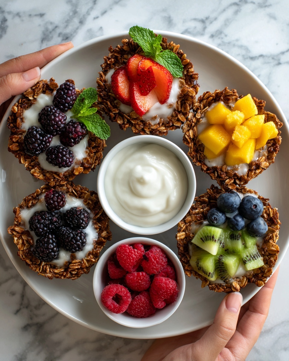 - Add Toppings: Sprinkle extra granola, fresh berries, or drizzle additional honey or maple syrup on top of the filled granola cups for added flavor and texture.