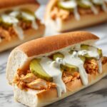 This Buffalo Chicken Cheesesteak is a hearty and flavorful sandwich featuring shredded chicken smothered in spicy buffalo wing sauce, caramelized onions, and melted mozzarella cheese on toasted hoagie rolls. Perfect for a quick yet indulgent meal, this recipe combines the classic cheesesteak concept with the bold taste of buffalo chicken, finished with optional ranch or blue cheese dressing and fresh herbs for a deliciously satisfying bite.