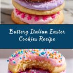 These Buttery Italian Easter Cookies are a traditional holiday treat, featuring a soft, tender dough flavored with vanilla and optional almond extract. After baking to a perfect light golden bottom, the cookies are glazed with a sweet powdered sugar milk mixture and decorated with cheerful pastel sprinkles, making them perfect for festive occasions.