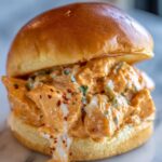 Ladle the spicy chicken mixture generously onto the bottom halves of your toasted buns. If you like, add toppings such as sliced pickles for tang, shredded cheese for creaminess, or coleslaw for crunch and coolness. Cap with the top buns, press down gently, and get ready to enjoy the ultimate comfort food.