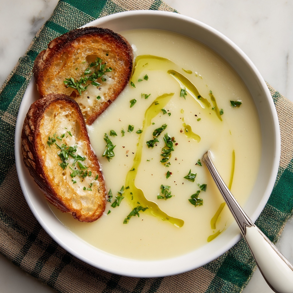 This comforting Celeriac Leek Soup with Thyme Gruyère Toasts is a creamy, velvety bowl perfect for chilly days. The soup combines the earthy flavor of celeriac and potatoes with aromatic leeks, garlic, and fresh thyme, blended into a smooth, rich base finished with cream. Served alongside crunchy toasted bread topped with melted Gruyère cheese and a sprinkle of thyme, it’s an elegant yet cozy European-inspired dish ideal for a satisfying lunch or dinner.