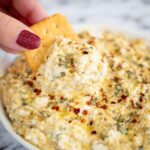 Once baked, give the dip a few minutes to cool down just enough so it’s warm, not scorching. This helps it set a bit, making it easier to scoop and enjoy without losing any of its creamy goodness.