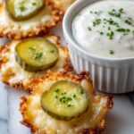Crispy, cheesy pickle chips baked to perfection with a savory ranch seasoning for a delightful snack or appetizer.