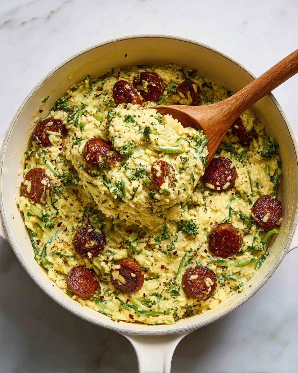 This Cheesy Sausage and Rice recipe is a hearty, flavorful one-pan meal perfect for busy weeknights. Featuring smoky sausage, tender rice, and melted cheddar cheese, it combines savory and creamy textures in a convenient stovetop dish that everyone will love.