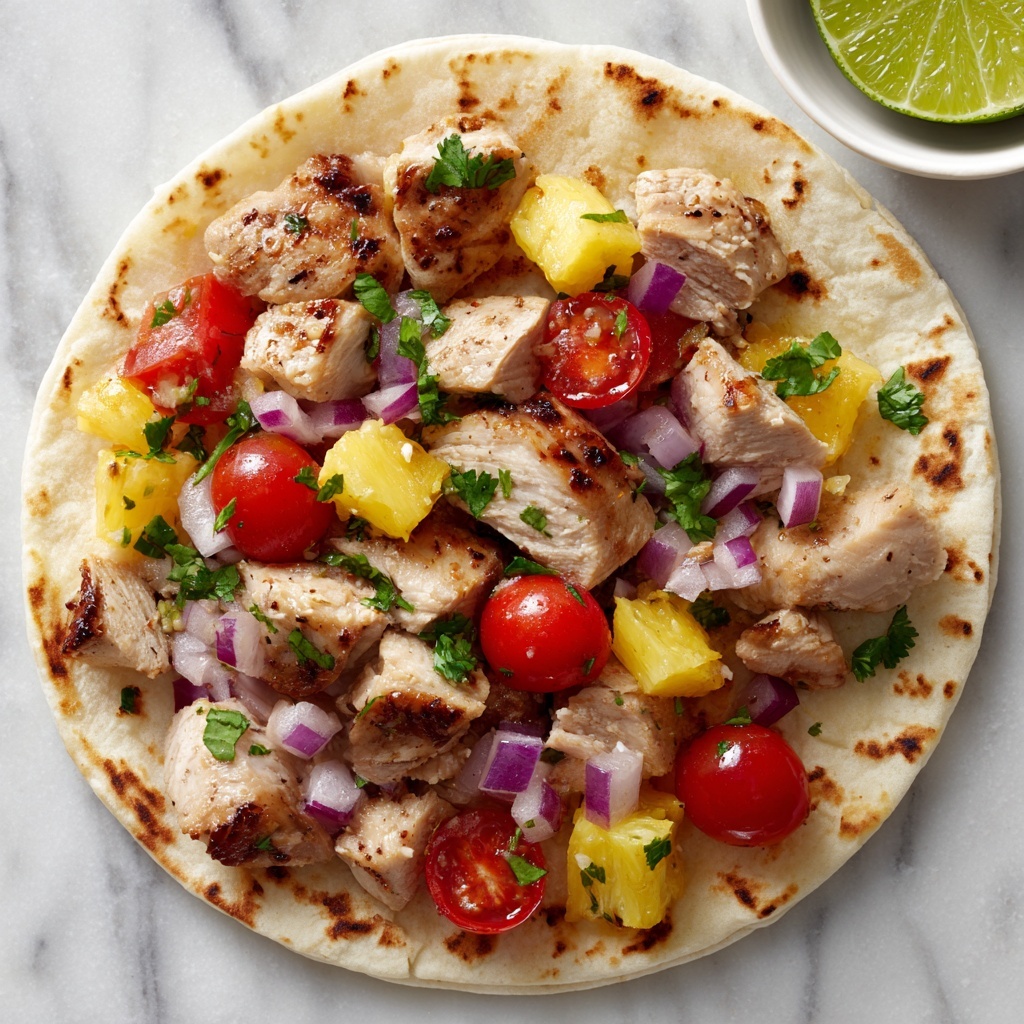 - Assemble and Serve: Fill each warmed tortilla with the prepared chicken pieces, top generously with pineapple salsa, and add any additional desired toppings such as avocado, sour cream, or cheese. Serve immediately with lime wedges for extra brightness.