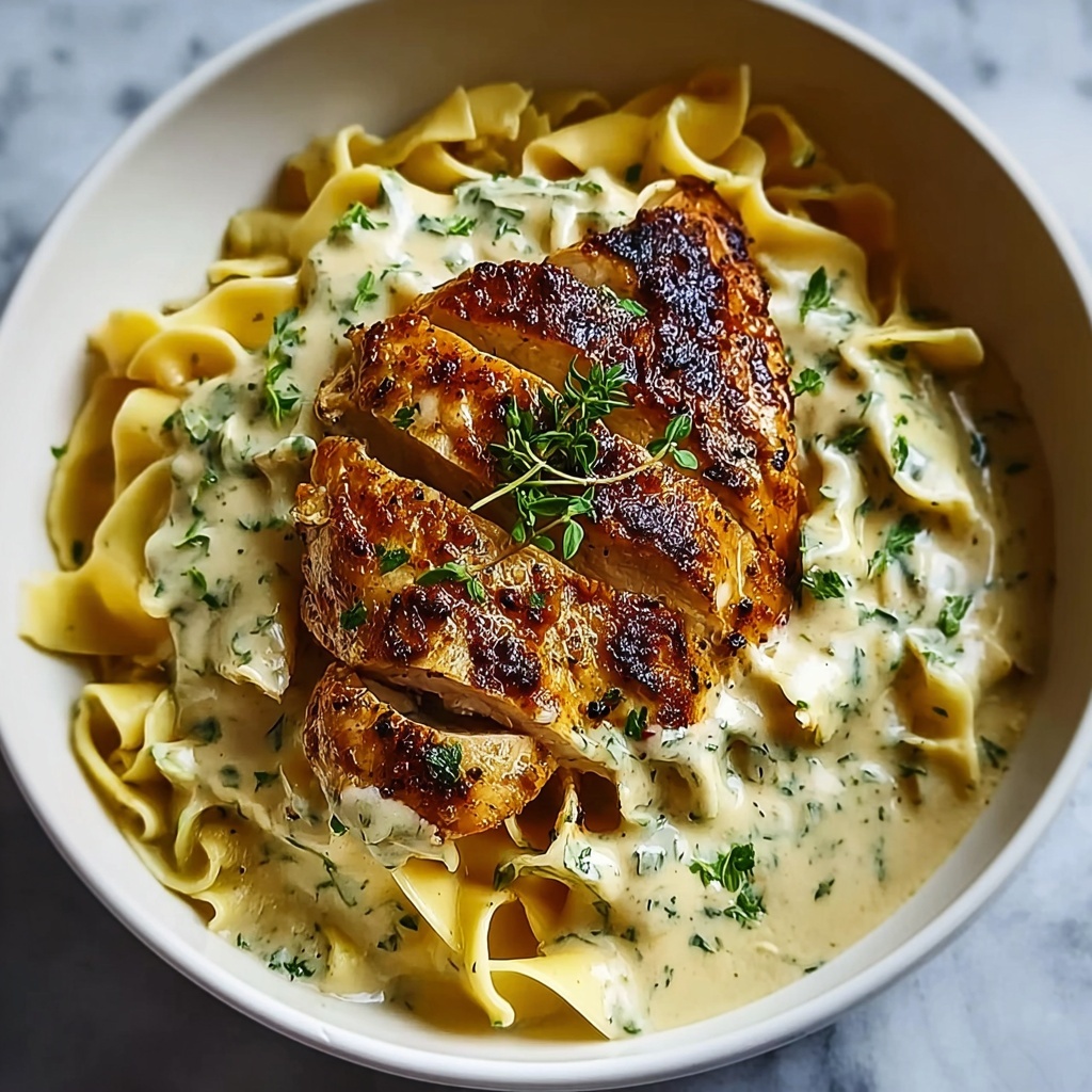 Plate the buttered noodles and arrange the sliced chicken on top. If you’re feeling fancy or want a fresh, vibrant touch, sprinkle chopped parsley and grated Parmesan cheese over the dish. These finishing touches make the plate look as good as it tastes!