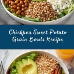 This Chickpea Sweet Potato Grain Bowl is a wholesome and vibrant meal featuring roasted sweet potatoes and chickpeas seasoned with smoked paprika and cumin, served on a bed of your choice of cooked grains. Topped with fresh spinach or kale, creamy avocado slices, optional feta cheese, and drizzled with a tangy tahini-lemon dressing, this bowl is perfect for a nutritious and satisfying Mediterranean-inspired vegetarian main course.