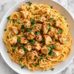 A generous sprinkle of grated Parmesan cheese over the top is my favorite way to finish this dish—adding a salty, creamy edge that melts perfectly over the warm pasta and chicken. You can also add an extra pinch of cayenne if you want to turn up the heat.