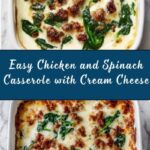 This Chicken and Spinach Casserole with Cream Cheese is a creamy, flavorful dish combining tender seared chicken breasts, fresh spinach, and a rich cream cheese mixture topped with melted mozzarella cheese. It’s baked to bubbly perfection and makes a comforting meal perfect for weeknights or gatherings.