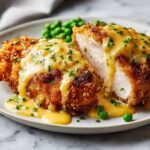Chicken Cordon Bleu is a classic dish featuring tender chicken breasts stuffed with ham and Swiss cheese, then coated in a crispy breadcrumb crust. This comforting recipe combines pan-frying and baking techniques to achieve a golden exterior with a deliciously melted cheese interior, perfect for a satisfying meal.