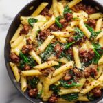 This Creamy Italian Sausage Pasta combines savory ground Italian sausage with tender penne pasta in a rich and luscious heavy cream sauce, infused with garlic, onions, and spicy red pepper flakes. Baby spinach adds a fresh touch of color and nutrients, while parmesan cheese melts in for a delightful cheesy finish. Ready in just 20 minutes, this comforting dish is perfect for a quick weeknight meal.