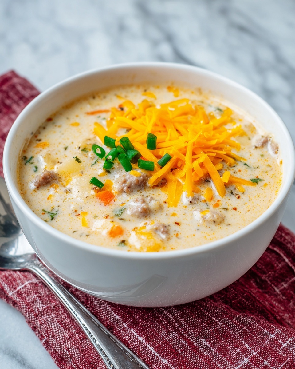 - Serve and Garnish: Ladle the soup into bowls and garnish with shredded cheddar cheese, chopped green onions, and additional fresh parsley if desired. Serve the soup hot for the best flavor.
