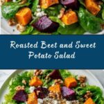A vibrant and healthy salad featuring roasted beets and sweet potatoes tossed with mixed greens, tangy feta cheese, toasted nuts, and a creamy Greek yogurt dressing. This Mediterranean-inspired dish offers a delightful balance of sweet, savory, and creamy flavors, perfect for a light lunch or side dish.