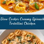 A comforting and creamy slow cooker casserole featuring tender chicken breast, cheese tortellini, and fresh baby spinach simmered in a flavorful marinara sauce blended with Italian spices and finished with mozzarella, Parmesan, and cream for a hearty family meal.