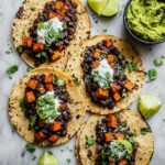 The fun part! Load each tortilla with a generous spoonful of the roasted sweet potatoes, then add slices of ripe avocado and a sprinkle of chopped red onion. Crumble over feta or cotija cheese for a salty punch, then drizzle with the tangy lime crema. Finish with a scattering of fresh cilantro leaves and serve alongside lime wedges for an extra fresh squeeze. These tacos are as beautiful as they are delicious.