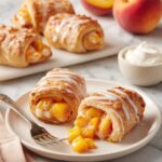 - Prepare Peach Filling: In a small saucepan over medium heat, combine the peaches, brown sugar, cinnamon, vanilla extract, and cornstarch. Cook for 3–5 minutes, stirring frequently, until the mixture thickens slightly and becomes syrupy. Remove from heat and let cool.