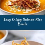 These Crispy Salmon Bowls are a nutritious and flavorful dish perfect for a quick and healthy meal. Featuring oven-baked salmon with a crispy edge, served over a bed of rice and fresh vegetables, and drizzled with a tangy sesame-ginger sauce, this recipe combines ease with vibrant flavors for a satisfying dinner.