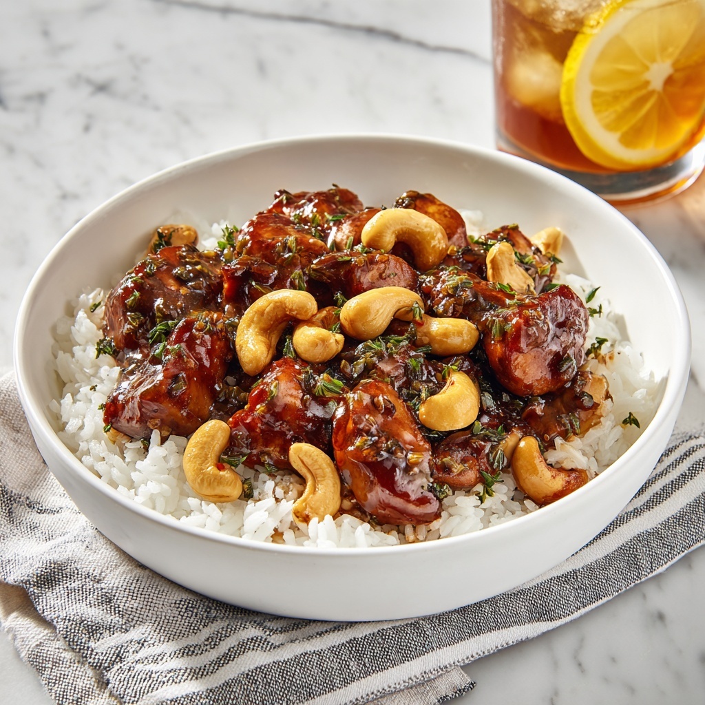 - Serve: Serve the cashew chicken hot over cooked rice. Garnish with sliced green onions for fresh flavor and added color.