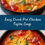 This Crock Pot Chicken Fajita Soup is a hearty and flavorful slow-cooked meal featuring tender shredded chicken simmered with diced tomatoes, bell peppers, and taco seasoning. Perfect for an easy weeknight dinner, this soup combines the savory spices of fajitas into a comforting broth, garnished with sour cream, cheddar cheese, and fresh cilantro.