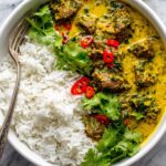 The proper garnishes bring this curry to life with extra layers of flavor and flair. Fresh cilantro adds a burst of herbaceous brightness, while additional sliced chili peppers give an exciting heat punch. Don’t forget a squeeze of lime juice—the citrus glistens beautifully against the creamy curry and lifts every component on the plate.