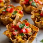 - Assemble Cups: Line each muffin cup with one wonton wrapper, gently pressing it into the base and sides. Spoon a layer of the taco beef mixture into each lined cup, then sprinkle a layer of shredded cheddar cheese over the beef. Add another wonton wrapper on top, followed by another layer of taco mixture, and finish with a final layer of cheese on top.