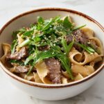 Now, add the cooked noodles to the skillet along with the ground cumin. Give everything a thorough toss to coat the noodles and meat with the spice mixture, ensuring the cumin’s warm earthiness permeates every bite. Stir in the sliced scallions and taste for seasoning adjustments before serving.