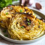 Fresh garnishes can take these cabbage steaks to the next level. Sprinkle chopped fresh parsley or chives on top just before serving for a pop of bright color and fresh herbal aroma. A squeeze of lemon juice also works wonders, adding a lively citrus brightness that cuts through the richness of roasting.