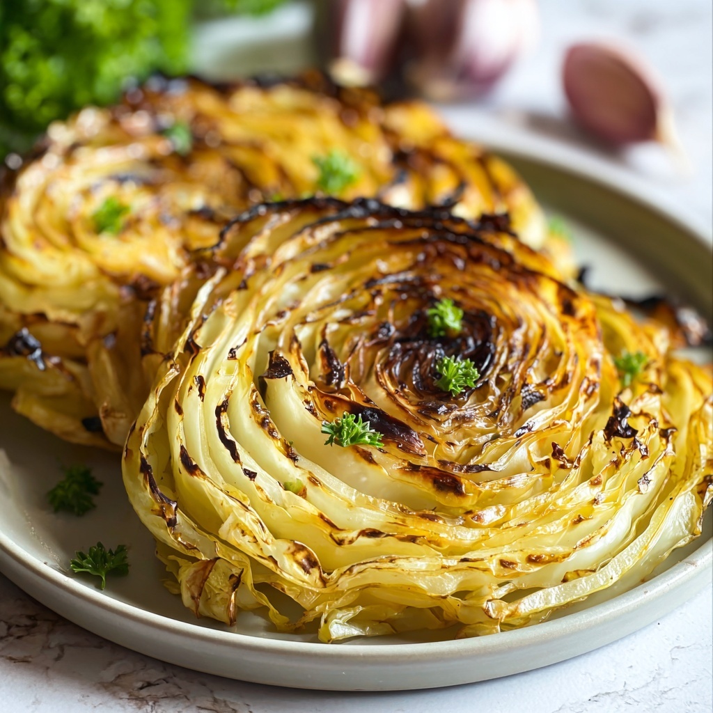 For a bit of fun, arrange the cabbage steaks stacked with layers of hummus or a drizzle of tahini sauce. You can also top them with caramelized onions or toasted nuts to add texture and flavor complexity. They make an impressive centerpiece when presented on a rustic wooden board with other roasted veggies.