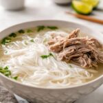 This Easy Version Beef Pho delivers the rich, aromatic flavor of traditional Vietnamese pho in a simplified, time-saving version. Featuring a quick broth infused with spices, tender thinly sliced beef, and fresh toppings, this recipe offers a satisfying homemade meal that captures the essence of classic pho without hours of simmering.