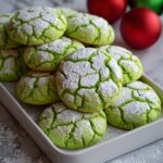 These Festive Green Sugar Cookies are vibrant, soft, and delightfully crackled, perfect for holiday celebrations. Using a white cake mix combined with eggs and oil, enhanced by green gel food coloring, this easy recipe yields beautifully tinted cookies coated with granulated and powdered sugar for a charming texture and a sweet finish.