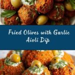 Fried Olives with Garlic Aioli is a crispy and flavorful appetizer featuring large green olives breaded and fried to golden perfection. Served with a creamy garlic aioli, this Mediterranean-inspired snack is perfect for parties or casual gatherings.
