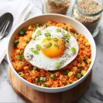 - Fry Eggs: In the same skillet, add a splash of vegetable oil if needed and fry the eggs to your preferred doneness, whether sunny-side up or over-easy, ensuring the yolk remains runny to complement the spicy rice.