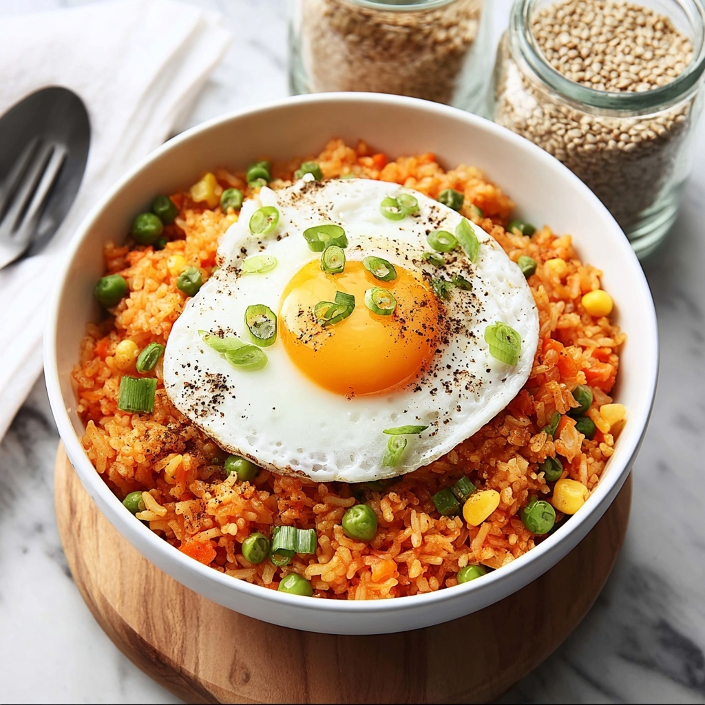 Gochujang Fried Rice is a flavorful Korean-inspired dish featuring crispy fried rice tossed with a spicy, savory gochujang sauce, sautéed vegetables, and topped with a perfectly fried egg. This easy 30-minute meal combines the heat of Korean chili paste with the comfort of fried rice, making it a delightful weeknight dinner for four.