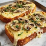 Gourmet Cheesy Mushroom and Garlic Toasts are an elegant and flavorful appetizer or snack featuring sautéed garlic and mushrooms on toasted sourdough, topped with melted Gruyère or mozzarella cheese, Parmesan, and fresh parsley. This recipe offers a perfect balance of creamy, savory, and aromatic notes in a quick 25-minute preparation.