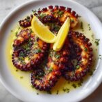 This Grilled Octopus recipe delivers tender, charred octopus with a flavorful garlic and olive oil marinade. Perfectly cooked on a hot grill, the octopus is juicy and smoky, ready to be served with fresh lemon wedges and parsley for a Mediterranean-inspired dish that’s simple yet impressive.