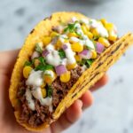 8. Assemble Tacos: Fill each crispy tortilla with sliced grilled steak, spoonfuls of corn salsa, and drizzle generously with the creamy Elote sauce. Serve immediately and enjoy!