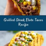 Delight in these flavorful Grilled Steak Elote Tacos combining perfectly marinated and grilled flap steak with smoky charred corn salsa, creamy Elote sauce, and melty cheese on crispy flour tortillas for a delicious and satisfying meal.