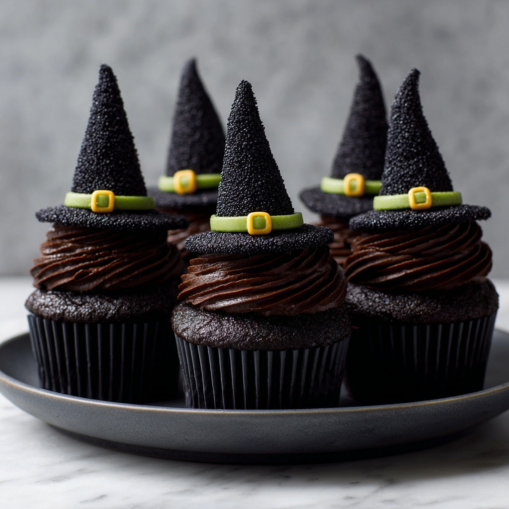 If you want to make your cupcakes ahead of time, freeze them without the chocolate hats assembled. Store the frosted cupcakes separately, then prepare and add the witch hats just before serving. This method helps keep the decoration crisp and the cupcakes moist.