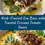 This Herb-Crusted Sea Bass recipe features tender sea bass fillets topped with a flavorful herb and breadcrumb crust, baked to perfection. Served with a vibrant tomato dressing and garnished with toasted coconut, this dish combines fresh herbs, zesty lemon, and a touch of sweetness for a sophisticated and delicious meal perfect for any occasion.