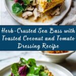 This Herb-Crusted Sea Bass with Toasted Coconut and Tomato Dressing Recipe pairs exquisitely with light, fragrant sides. Jasmine rice or couscous flavored with a hint of lemon or herbs provides a perfect balance. Roasted seasonal vegetables add color and earthiness, while a simple green salad with a citrus vinaigrette would bring freshness and a little crunch. These sides complement the flavors without overpowering the delicate crusted sea bass.