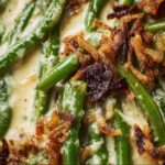 This homemade green bean casserole is a classic American holiday side dish featuring tender green beans in a creamy mushroom sauce, topped with crispy fried onions for a satisfying crunch. Perfect for Thanksgiving or any festive gathering, this recipe delivers rich, comforting flavors with a homemade touch.