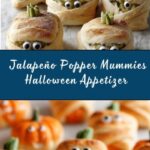 Jalapeño Popper Mummies are a fun and spooky Halloween appetizer featuring jalapeños stuffed with a cheesy cream cheese mixture, wrapped in crescent roll dough to resemble mummies, and decorated with candy eyes. These bite-sized snacks are perfect for parties and are baked until golden and bubbly, offering a delightful combination of creamy, spicy, and crispy flavors.