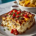 John Wayne Casserole is a hearty, comforting layered dish featuring a crispy biscuit crust topped with seasoned ground beef, a creamy sour cream and cheese mixture, and a golden melted cheddar cheese topping. This easy-to-make casserole combines savory southwest flavors with a rich, cheesy finish, perfect for family dinners or potlucks.