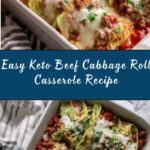 A hearty and low-carb Keto Beef Cabbage Roll Casserole that combines tender ground beef, wilted cabbage, and a flavorful tomato sauce, all topped with melted mozzarella cheese. This comforting casserole is an easy, oven-baked dish perfect for a nutritious family meal.
